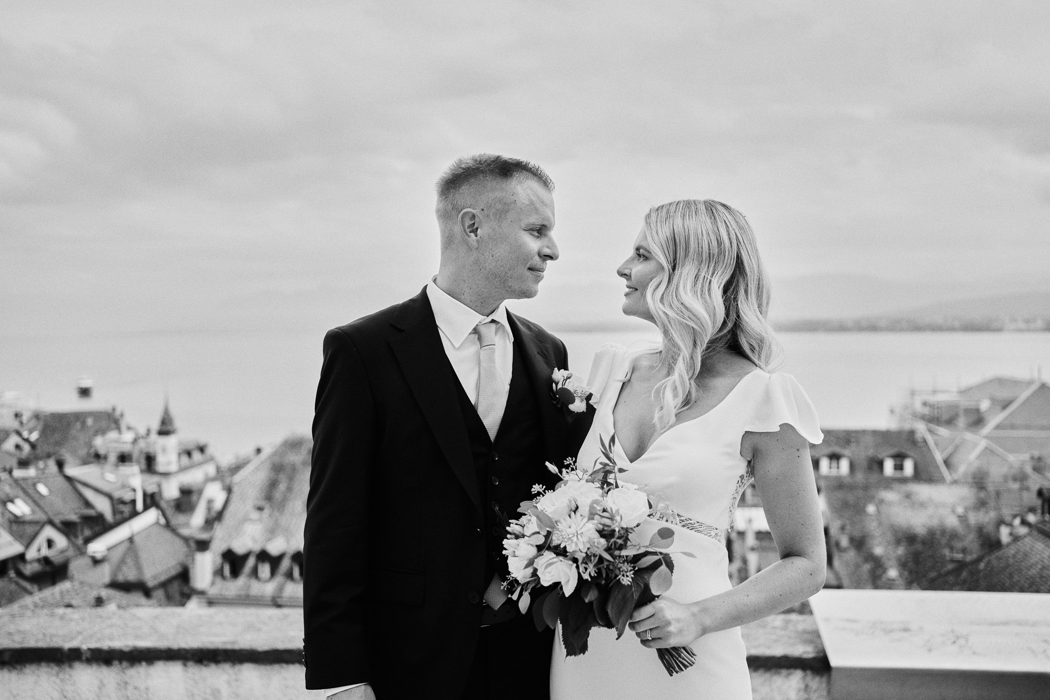 Photographe mariage Nyon – Jo Simoes capturant un couple de mariés à Nyon.